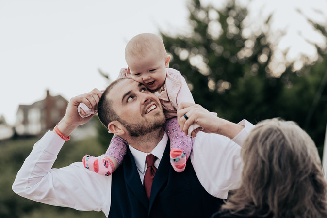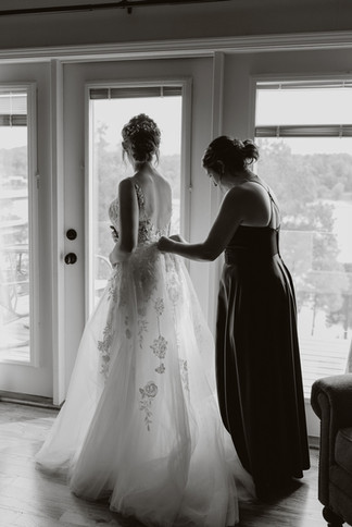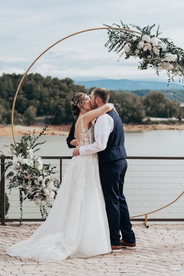 Their day was beautiful, intimate, and intentional. Kelsey got ready upstairs with the help of her sisters and her daughter while Zack wrote his private vows downstairs. After getting ready, Kelsey had a first look with some of the beautiful people who helped raise her- her mama and her close family friends. Then it was time to do the first look for her and Zack- we drove to the Dandridge Dock and had the water and mountains surrounding them as they saw each other for the first time and exchanged their private vows. They had a beautiful ceremony, exchanged their rings, and promised forever to each other as their family and friends looked on with tear-filled eyes. Then we got to sneak off for some couples portraits after the ceremony and found some local TVRA land that made a beautiful backdrop for their photos!